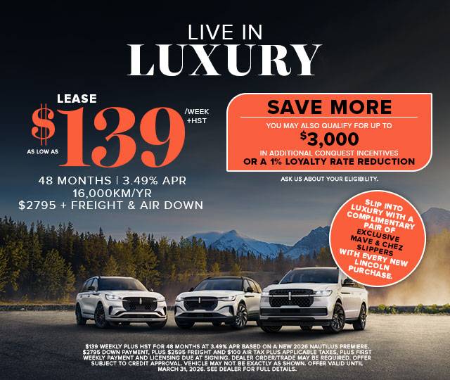 Located in the centre of Toronto and servicing the Greater Toronto Area , Yorkdale Lincoln proudly offers an exceptional selection of new and quality pre-owned Lincoln vehicles, including the all-new Navigator, Nautilus, Corsair, and Aviator. As a premier Lincoln dealership, we are committed to delivering personalized luxury through expert service, Lincoln Owner Benefits, a dedicated Lincoln Concierge and a seamless purchase experience. Whether you’re looking for your next SUV or require trusted Lincoln service and maintenance, experience the Yorkdale Lincoln difference.