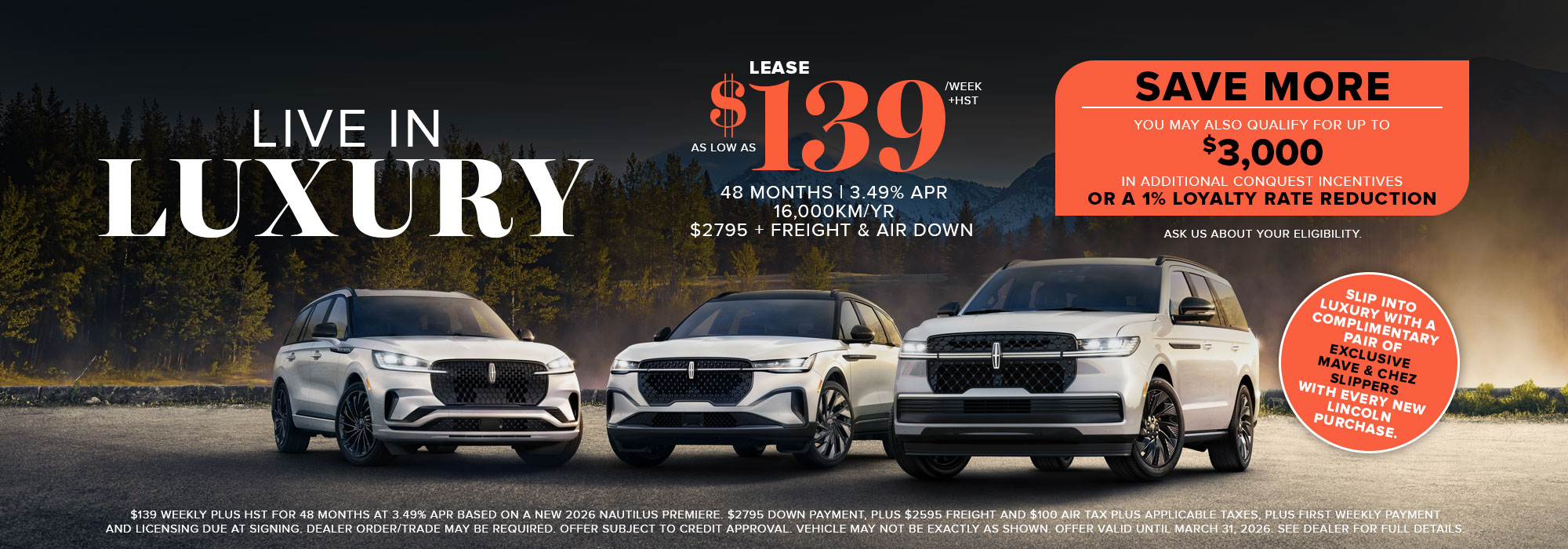 Every new Lincoln purchase also includes a complimentary pair of Mave & Chez , created exclusively for Yorkdale Lincoln clients, luxury comfort for life on the road and at home. While supplies last.