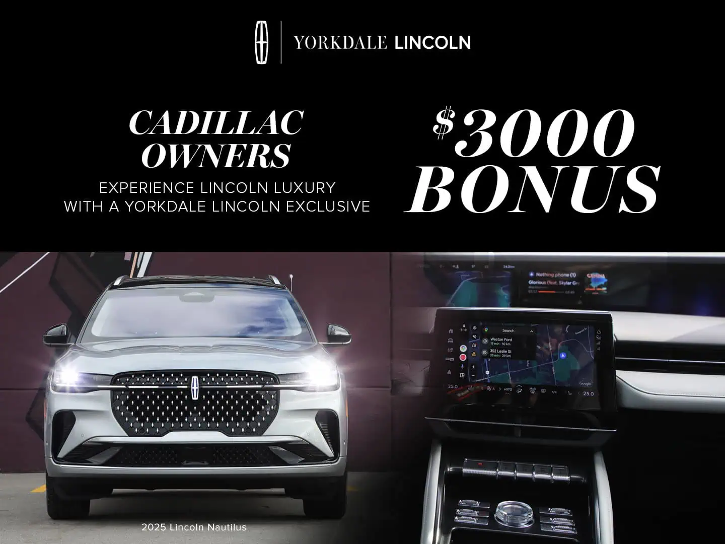 Experience unparalleled luxury and exceptional offers with our current vehicle specials at Yorkdale Lincoln. Our selection of in-stock Lincoln vehicles is ready for you to enjoy today. Should you desire a bespoke vehicle tailored to your specifications, we offer the opportunity to factory order your dream Lincoln. Whether you are interested in the Lincoln Corsair, Lincoln Nautilus – with class-leading interior display screen, Lincoln Aviator, Lincoln Navigator or our available Lincoln Plug-In Hybrid Vehicles, our team of specialists can help find the perfect luxury vehicle for you. Visit Yorkdale Lincoln, conveniently located on Dufferin Street just south of the 401 and Yorkdale Mall, located in the Greater Toronto Area, and indulge in the superior service and remarkable offers that distinguish us as your premier destination for luxury automotive excellence. Experience the Difference at Yorkdale Lincoln.